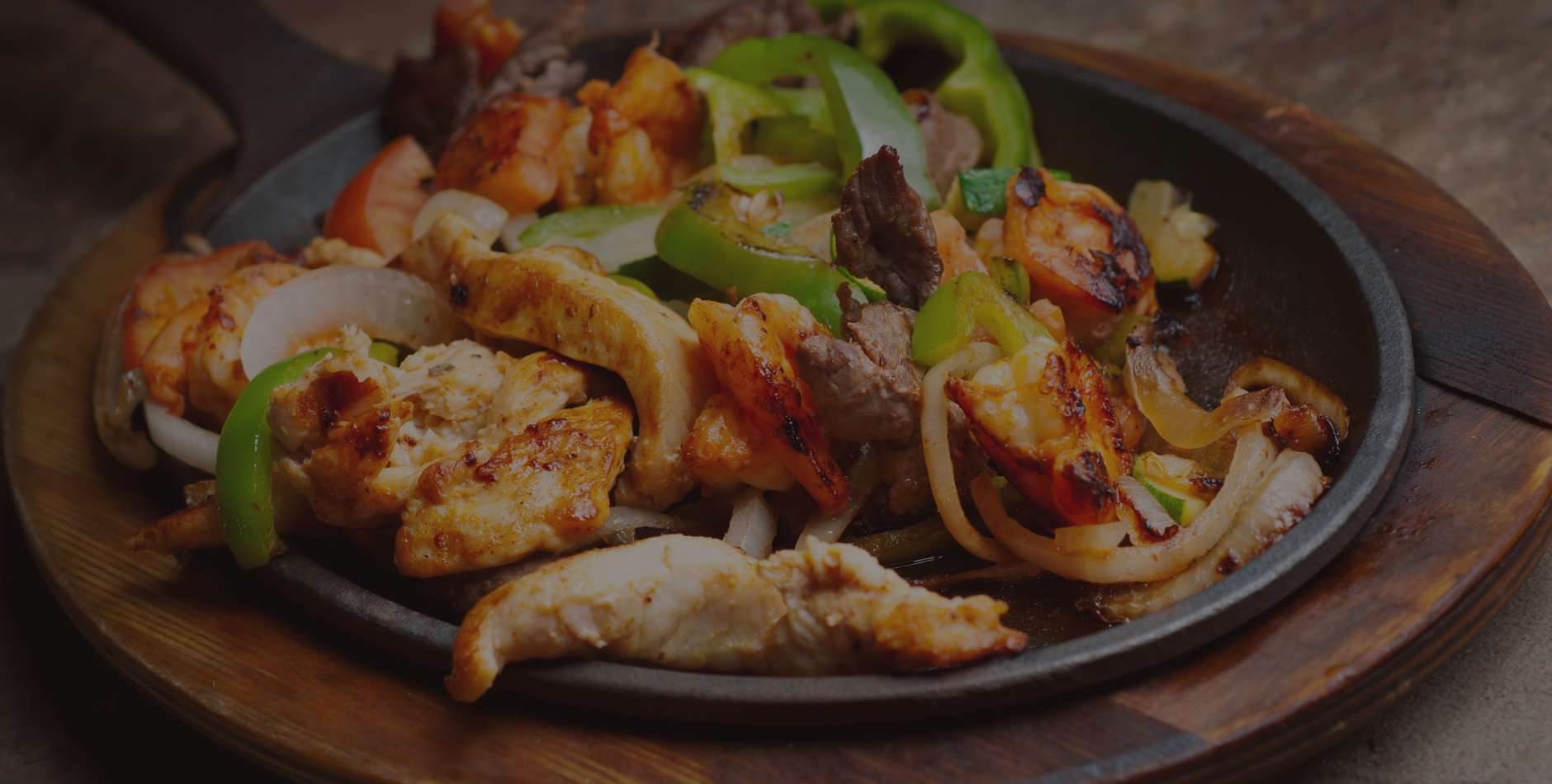 ¡Disfruta de nuestras deliciosas FAJITAS MIXTAS! Una mezcla perfecta de tiernas tiras de carne, pollo y camarones salteados con cebolla y pimiento. ¡Una fiesta para tu paladar! No te pierdas nuestra especialidad de la casa.